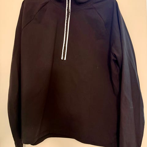 Hyväkuntoinen adidas running -merkkinen ulkoilu-/juoksupusero. Vuoriton, vetoketju edessä, toisessa sivusaumassa vetoketjulla suljettava tasku, materiaali polyester. Koko XL. Heijastavat osat kyynärpäiden kohdalla. Ranteista ylöspäin n.20 cm joustava materiaali.