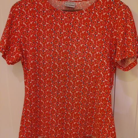 Marimekon ihanat vajaamittaiset housut koossa 40. Väri tumma tiilenpunainen/musta. Materiaali 98% puuvilla, 2% elastaani. Vyötärön ympärys 86 cm, Haara-lahkeensuu 64 cm. Oikein hyväkuntoiset.
