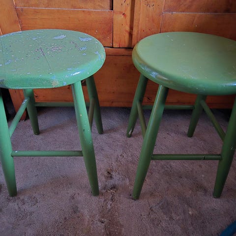 Vanha kaunis jakkara. Maalipinnassa lohkeamia
