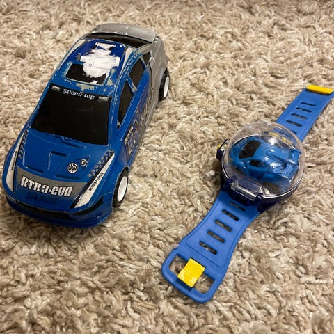 Lataa kotelossa ja pystyy laittamaan ranteeseen kiinni ja ohjaamaan autoa.