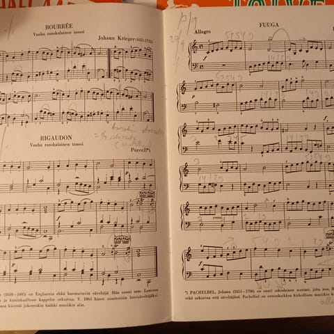 Venäläinen pianokoulu 1. Siisti käytetty. Kansissa kulumaa, merkintöjä tehty lyijykynällä jonku verran. Oon kumittanut pois, mutta jotain voinut jäädä huomaamatta. Hinta 10 euroa. Nouto Kempele tai postitse pakettina 6,90 tai toridiilinä ko kustannuksen mukaan.