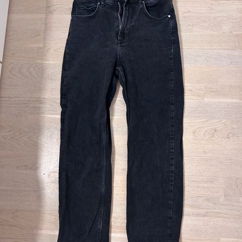 Myydään BikBokin Slim Split mustat farkut. Pienet "halkiot" lahkeissa, ommeltuna nyt kiinni - saa purettua kyllä.