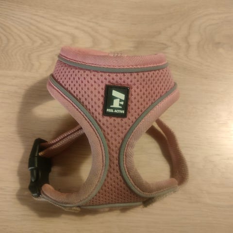 Oli vähäisellä käytöllä Chihuahua koiranpennulla. Pientä tummentumaa näkyvissä käytöstä, saa varmaan pestyä (ei olla pesty valjaita käytön jälkeen).