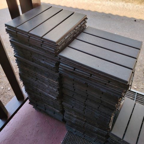 30x30cm koko. Eli näillä tekee n. 6m2 alueen jos yhdistää värit keskenään.