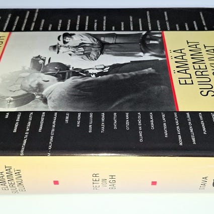625-sivuinen kirja Elämää suuremmista elokuvista, joita Peter von Bagh esittelee.