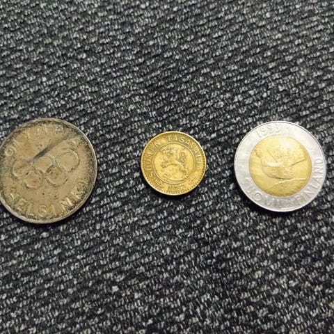 Myydään kaikki kerralla, vanhoja ja nykyisiäkin rahoja eri maista.