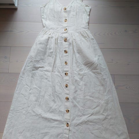 H&M kaunis valkoinen pellavasekoitehame. Todella mukava ja vilpoisa päällä, materiaali mukava pellava ja viskoosi sekoite. Koko 36 mutta olen siirtänyt nappia niin että hame nyt on sopiva 38 kokoiselle. Saa helposti siirrettyä itselle sopivaksi!