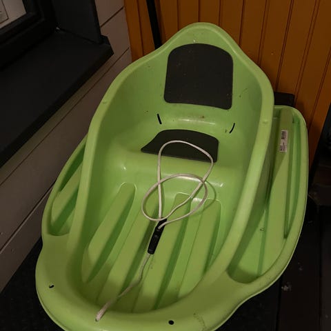 Vihreä baby cruiser vauvapulkka. Ehjä. Valjaita ei ole tallella.