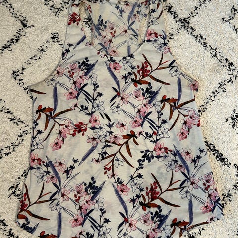Cotton on söpö satiini kukkatoppi koko S. Tummansininen valkoisella kukilla. Materiaali satiini ja laskeutuu kauniisti. Säädettävät olkaimet!