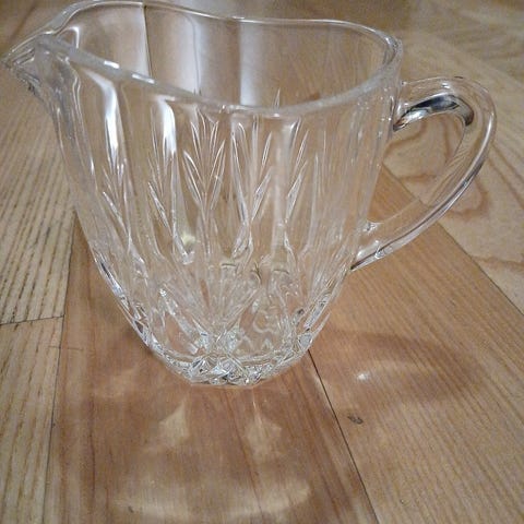Myydään lasinen kermakannu, korkeus 13 cm. Ehjä virheetön. Hinta 3,- lisäksi edullinen Toridiili toimitus.