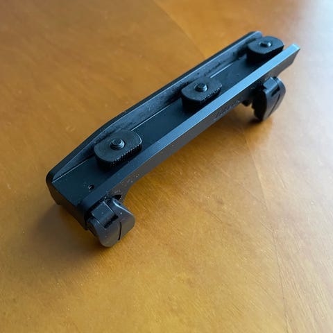 Etummaisen renkaan päällä picatinny kiskon pätkä, johon kiinnität esim. punapistetähtäimen.