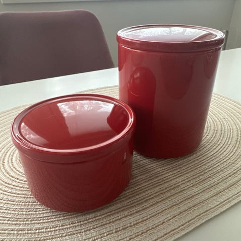Kaksi pientä jälkeä sattuivat silmään, eivät kuitenkaan ole käytössä tulleita vaan lasittaessa. Muissa ilmoituksissa myynnissä kermakko/kaadin ja mukeja.