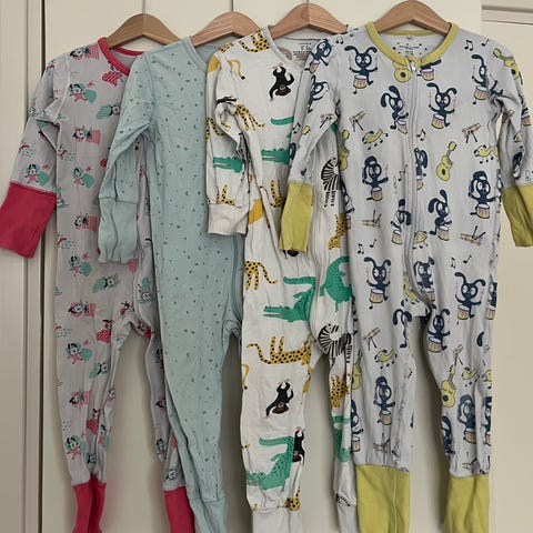 Meille uutena ostettu ja yhden lapsen käyttämä yömekko, 86/92. Muuten erinomaisessa kunnossa lukuunottamatta helmassa olevaa tahraa jota en ole yrittänyt poistaa. Hajusteeton savuton kotitalous.
