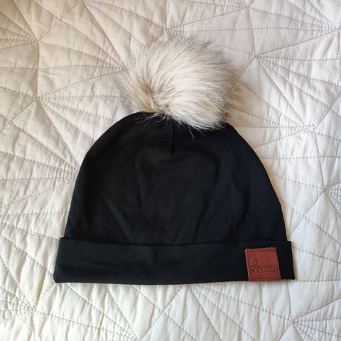 Loveiidan musta trikoopipo tupsulla. Napakka, pysyy hyvin päässä. Tosi vähän käytetty, melkein kuin uusi. Ympärysmitta venyttämättä noin 49-50cm. Ollut meillä käytössä n. 6-8 vuotiaana.