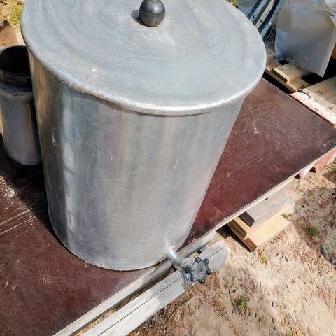 Sisäkorkeus noin 40 cm ja halkaisija 75 cm, ollut kuumavesipatana, painava,ehjä, vain nouto ja kantajat mukaan