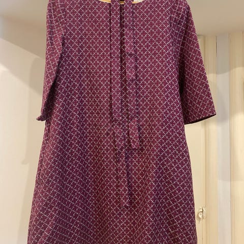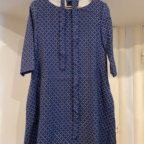 Myydään Samujin Finch-mekko. Vaaleansininen kuosi. A-linjainen mekko. Sivuilla taskut. Mukana vyö. Vuoriton. Takana puoleen selkään napit.