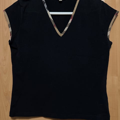 Burberry Brit musta t-paita, koko L, mutta mitoitus on niukka ja vastaa paremmin kokoa S-M (katso mitat). Kauniit puhvihihat. Hihansuissa on Nova check -kanttaus ja solmittavat nauhat. Paita on laadukasta ja joustavaa puuvilla-elastaania. Erinomaisessa kunnossa.