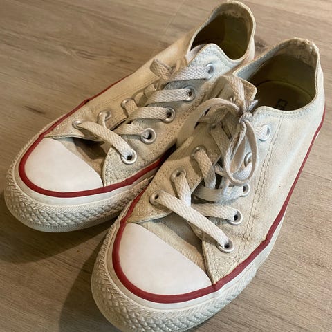 Vähällä käytöllä olleet ja täysin ehjät, mutta hieman likaiset Converset. Ei ole pesty ja suurin osa käytön jäljistä lähtee varmaan pesussa. Koko 36.