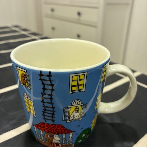 Siistit ja hyvät muumimukit. Muumitalo, Nipsu turkoosi ja Ninni puuteri. (3 kpl)