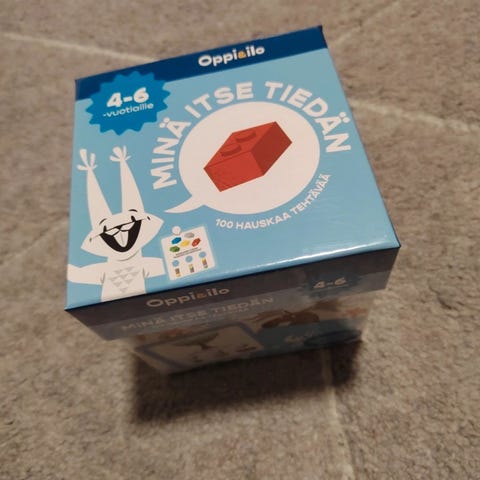 Oppi ja ilo puuhakortit 4-6 vuotiaille. Paketti revennyt, mutta kortit ehjät ja pyyhityt.