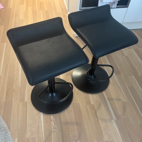 Myydään kaksi Ikean mustaa Dalfred-baarijakkaraa. Jakkaroissa on pientä maalikulumaa reunoilla, mutta yleisilme on kuitenkin ihan siisti. Jakkaran korkeus on säädettävissä. Myydään ensisijaisesti yhdessä. Mainittu hinta kattaa molemmat jakkarat. Tällä hetkellä jakkarat ovat osiin purettuina.