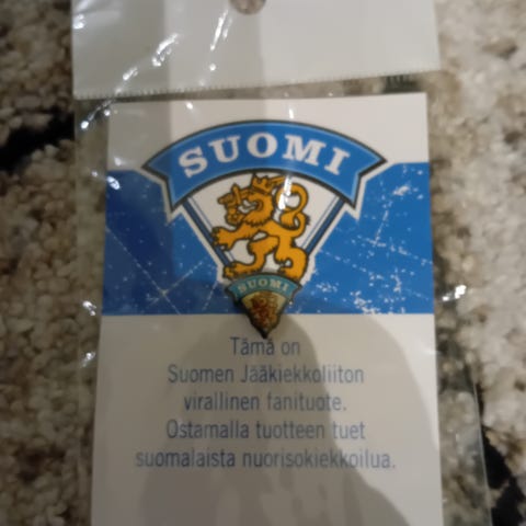 Kuvan Veikkuksen SM- liigan pelipaita -pinssi.