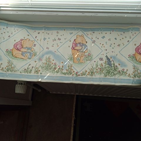 Nauhan pituus ei tiedossa, koita arvioida toisesta kuvasta. Itseliimautuva, mutta en luottaisi tuohon liimaan, kun en ikää osaa sanoa. Tapettiliimakin keksitty onneksi.