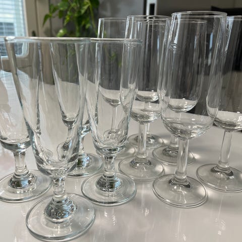 Jorma Vennolan suunnittelemat lasit. Muottiin puhallettu lasi, muovijalka polyasetaalimuovia, punainen. Tuotannossa vuosina 1980 – 1987 ja uudestaan 2000-luvulla. Lasit ovat uudenveroiset. Alkuperäispakkauksen pituus on 46 cm. Vetoisuus 22 cl.