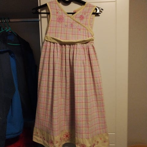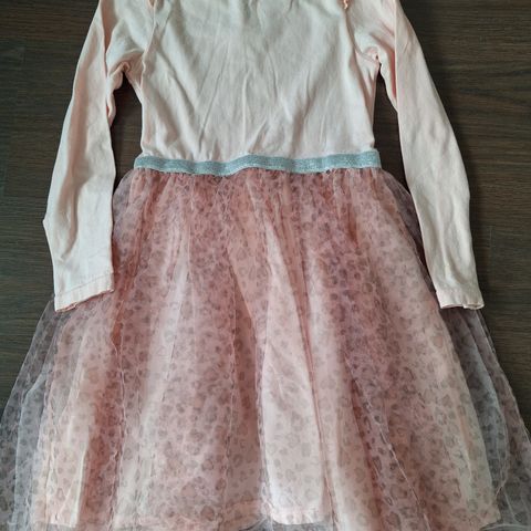 Vaaleanpunainen tyllimekko yläosassa hieman nukkaa kankaassa.(ciraf).Hinta:4e.