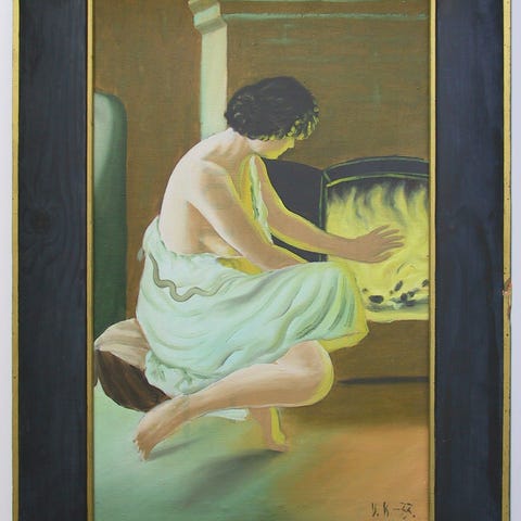 Öljyvärimaalaus esittää naista,mitat 58*73cm. Signeeraus I. Eremenko? Postikulut 22,90€