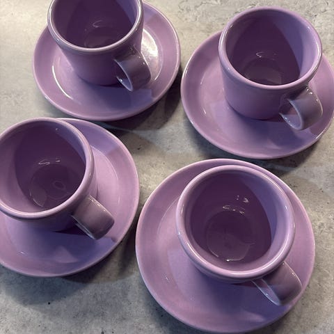 Myydään käyttämättä jääneet espressokupit tasseineen 6kpl 72€. Myynnissä myös samaa sarjaa ja väriä uudenveroiset kahvikupit 6kpl 48€.