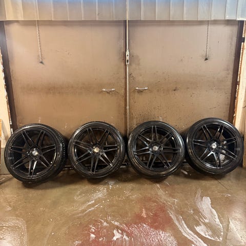 Tässä hyväkuntoiset 9x22 5x120 et32 R-Series R9 vanteet ostin ittelle uutena eikä ole kuin yhden kesän ajanut kun auton myin minkä alla nämä oli ja ole kanttari rallia suoritettu että lähes virheettömät ja bmw rengaspaine anturit vanteissa ja hyvässä kunnossa olevat kumit rullattu max 10tkm