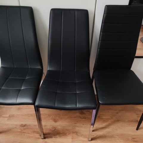 2 kpl keinonahkatuolia koko tuolin korkeus 103cm, selkänoja 55cm, istuinosa 42x40cm edestä ja takaa 34cm, istuinkorkeus 44cm, hinta 15e/kpl