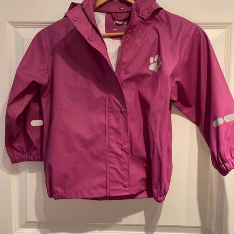 Myydään Peuhu sadetakki, koko 116. Ostettu uutena ja ollut hyvin vähällä käytöllä, joten kunto vastaa lähes uutta.