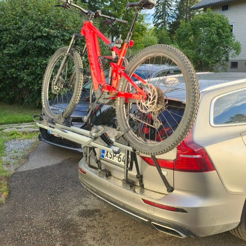 Kuljetettu 25kg painoista sähköpyörää Toyota Corollan ja Yariksen perässä.