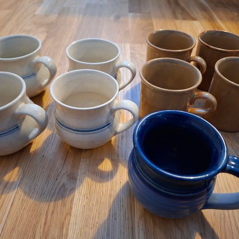 Kermansaven meriaiheiset kahvikupit; itäviitta, länsiviitta, pohjoisviitta ja eteläviitta. Nouto.