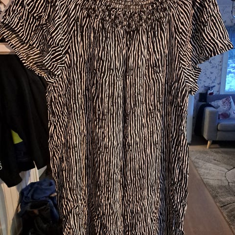 Ohut alaspäin kapeneva tunika. Kaunis liila. Hyväkuntoinen käytetty. Joku kukka kuvio edessä. Pesulappu leikattu pois. Ei tietoa materiaalista.