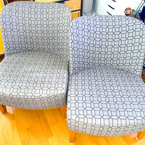 Hyväkuntoiset ja halutut Ikean klassikko nojatuolit 2 kpl. Kankaat ja jouset hyvässä kunnossa. Johtuen siitä, että näillä ei ole juurikaan istuttu. Hinta yhteensä kahdelle tuolille 340 euroa.