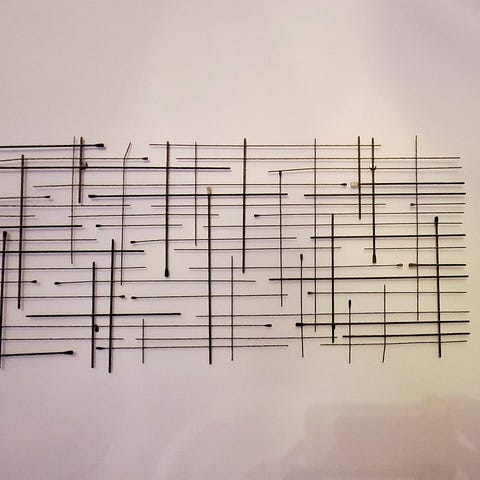 metallinen taulu. leveys noin 23cm, korkeus noin 19cm. läheltä katsottuna ja tietyssä valossa pinnassa on pieniä epätasaisuuksia.