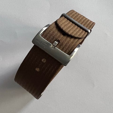Käyttämätön vihreä nyloninen kellonranneke, jonka kiinnitysleveys 18-24mm.