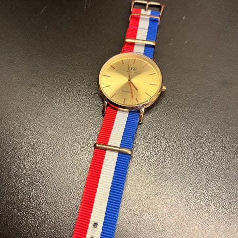 Täysin uusi rannekello, joka on vielä muoveissa. Rannekkeen pituus kellotaulusta kellotauluun 17 cm ja kellotaulun kansssa 22 cm