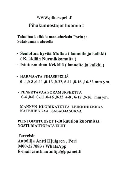 Lisätiedot 0400-227083 Antti, myös WhatsApp