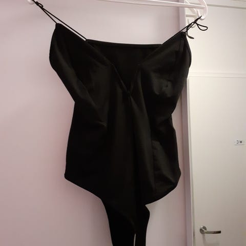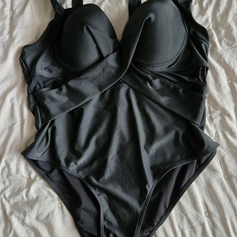 Shein uimapuku naisille. Väri on musta ja koko L, mutta pieni koko, joten vastaa kokoa M. Olkaimeton malli, kupeissa ei toppauksia, mutta paksua kangasta.
