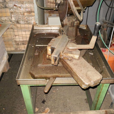 Metalli pyörösaha voimavirralla, muuten kunnossa mutta jäähdytysöljypumppu vaatii korjausta ei toimi. Toki voi käyttään ilmankin korjausta. Lisäksi laatikollinen teriä.