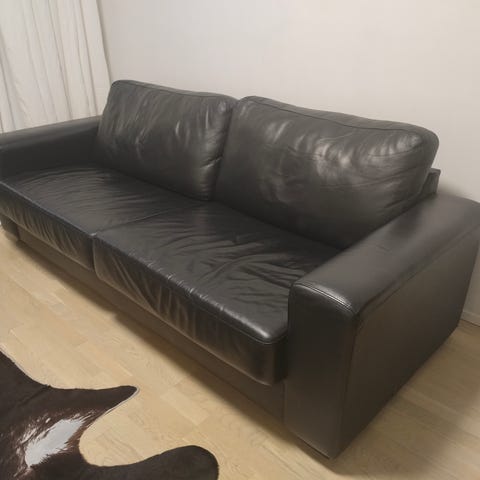 Tarjolla Dahlqvistin Lyon 3-istuttava nahkasohva.