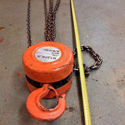 Ylimääräinen hadef ketjunostin 1000kg koukulla, toimivuudesta ei tietoa tullut purettuna meille, mutta on toimintakuntoisen näköinen