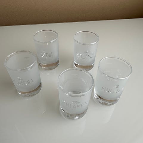 8 kpl Finlandia vodka snapsilaseja, huurrelasia