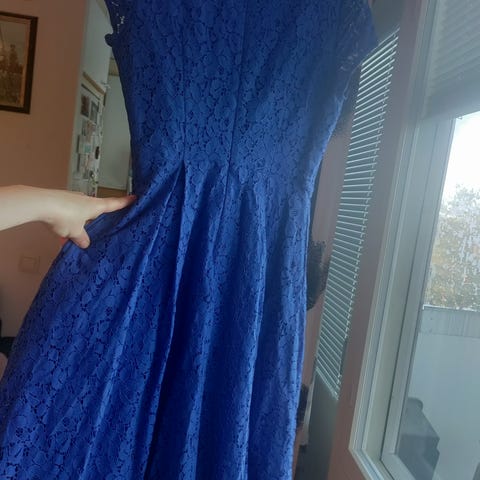 Kaunis vuorellinen juhlamekko. Hyväkuntoinen. Koko 42 ja vastaa ehkä paremmin 40. Lyhyet hihat. Ei ihan vartalonmyötäinen.