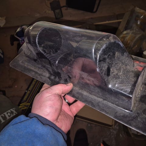 Uusi teline kahdelle 52mm mittarille A pilariin. Hiilikuitukuvio.