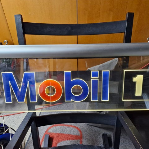 Myydään Mobil valokyltti, Neon Elektro, takapuolella kiskot kiinnitykseen.todella siistikuntoinen. Ollut vain sisällä